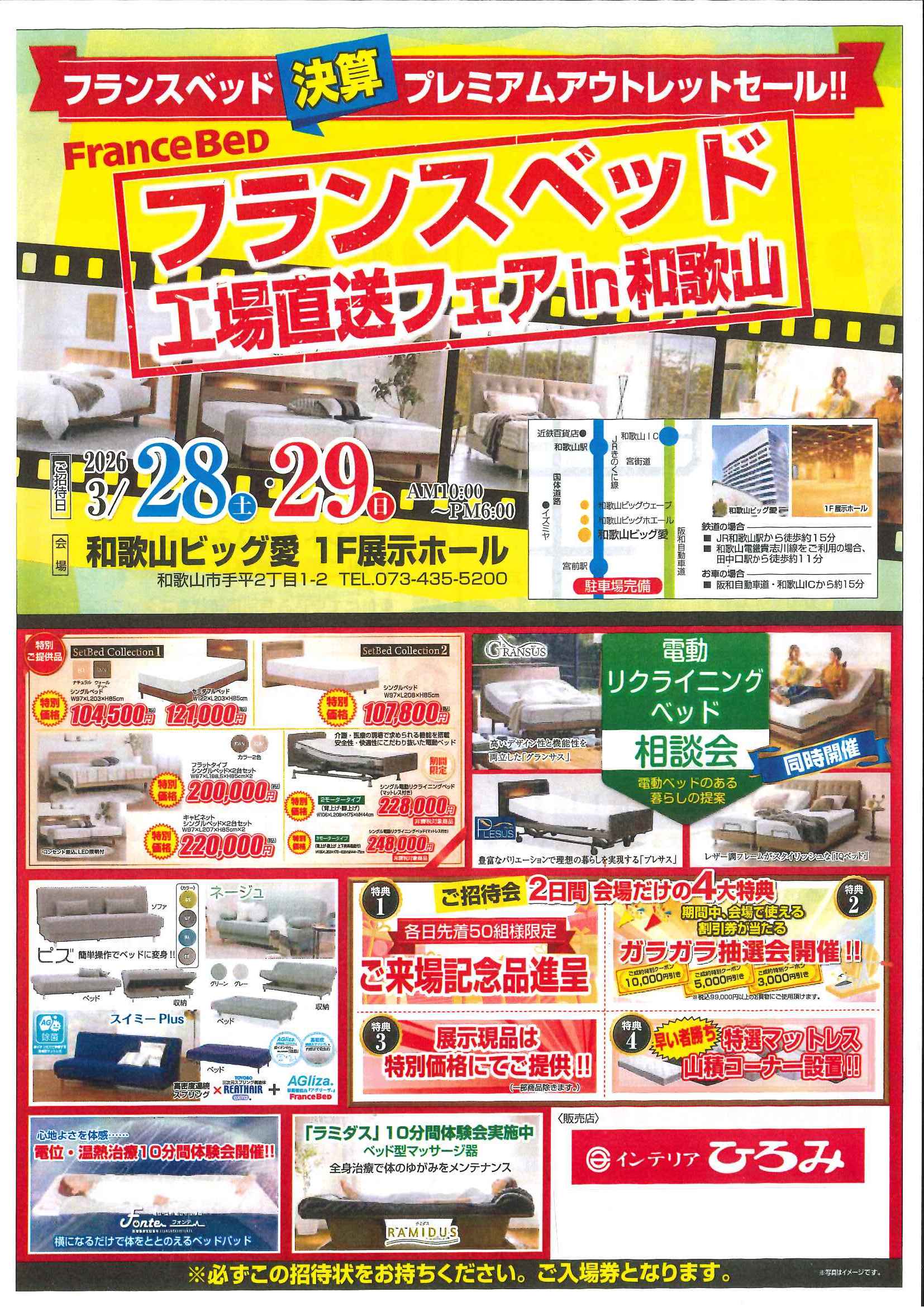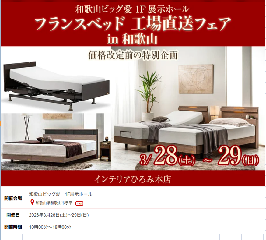 「2026 フランスベッド工場直送フェアin和歌山」が開催されます。